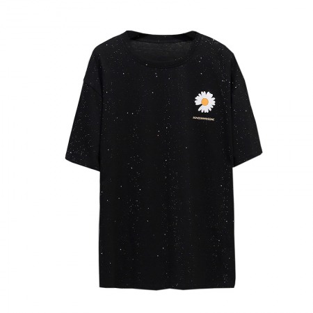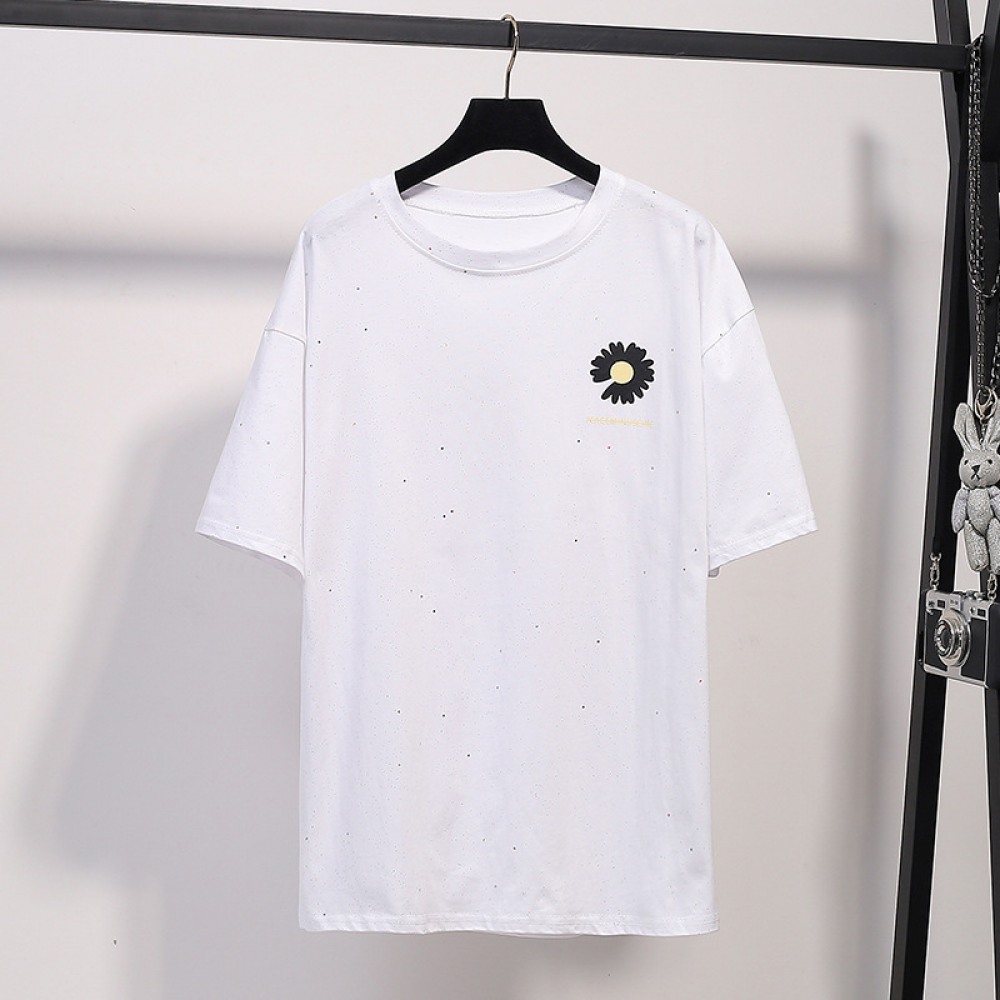 Extra-Plus Size Women's Summer New Fat Loose Sequined Small Daisy Print Short-Sleeved T-Shirt