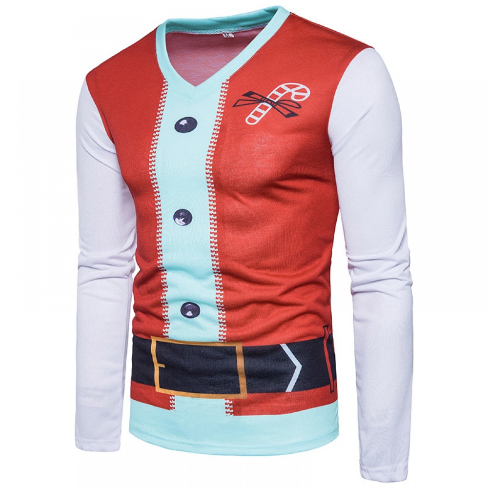 New Men's Fashion Santa Claus Hand-Held Color Stick Printing 3D Long-Sleeved T-Shirt