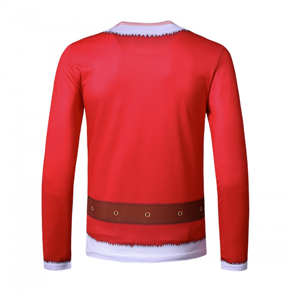 New Men's Round Neck 3D Santa Claus Costume Printing Long-Sleeved T-Shirt