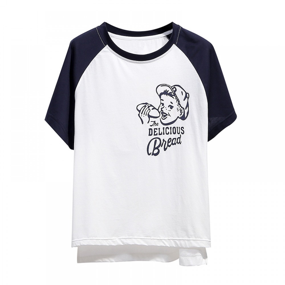 Plus Size Women's Plus Size Stitching Top Summer Fat Printing Contrast Short-Sleeved T-Shirt Women