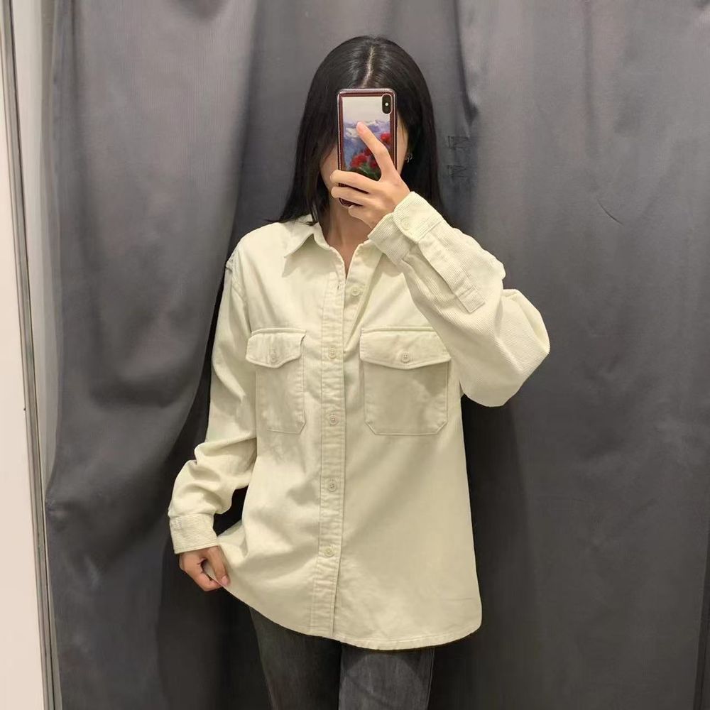 Women's Vintage Corduroy Work Shirt Long Sleeve Jacket
